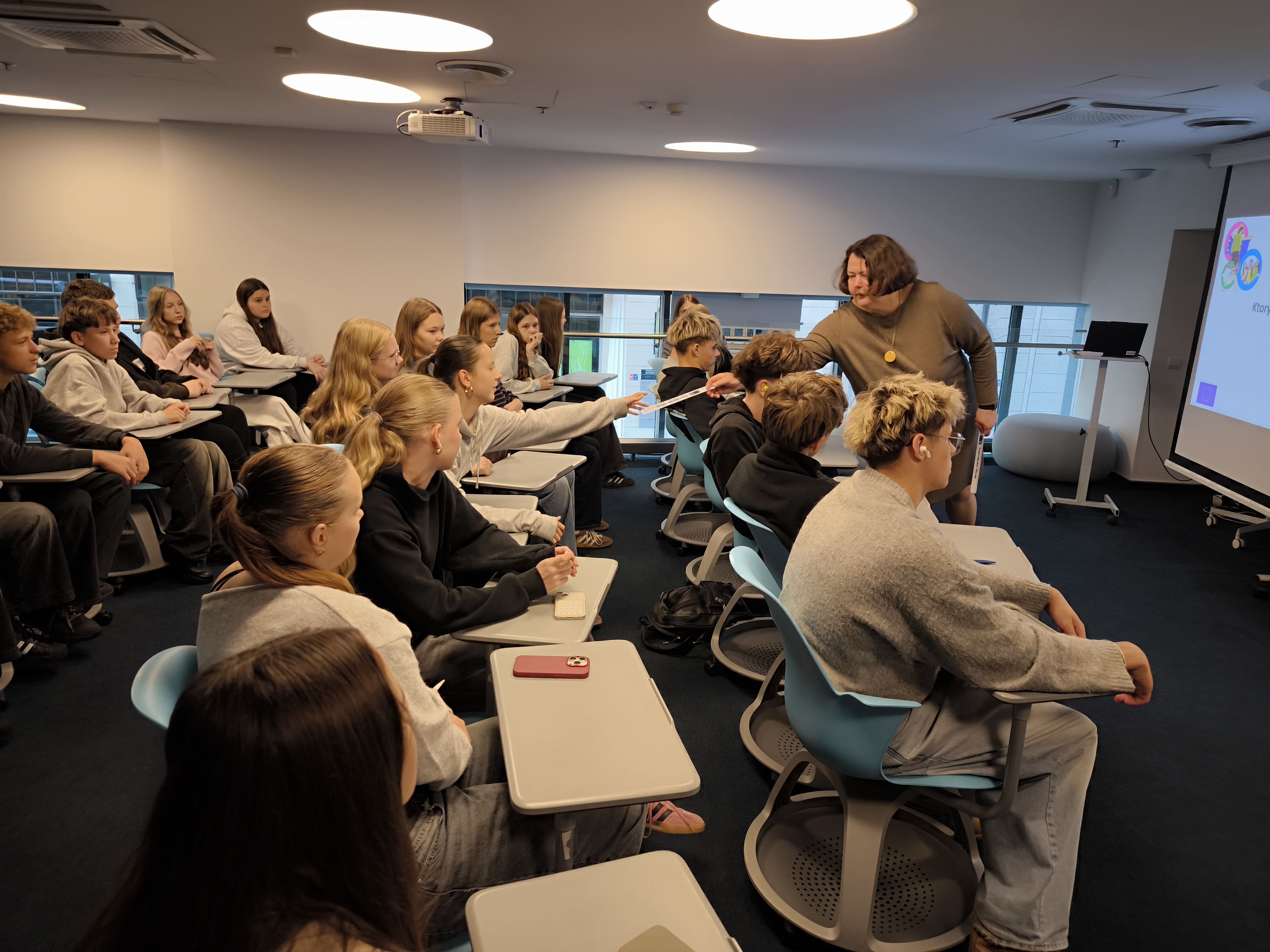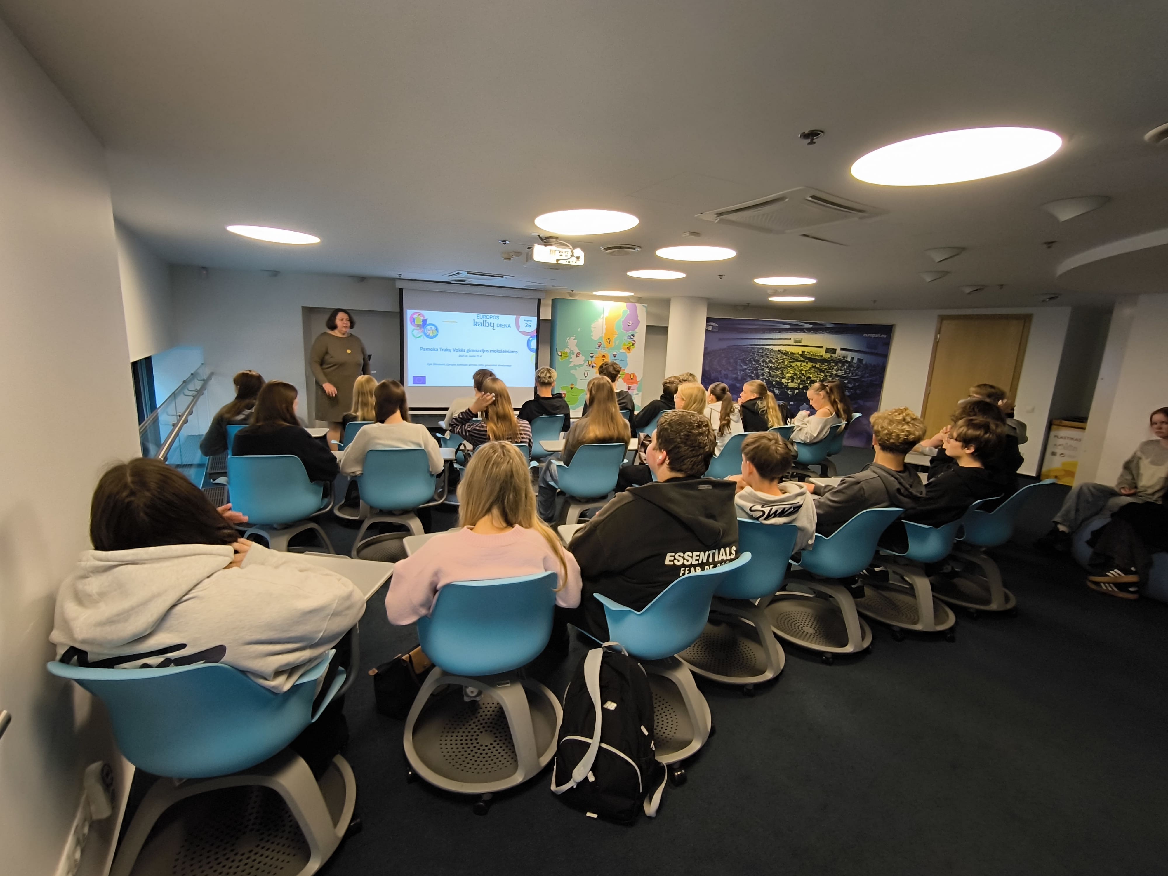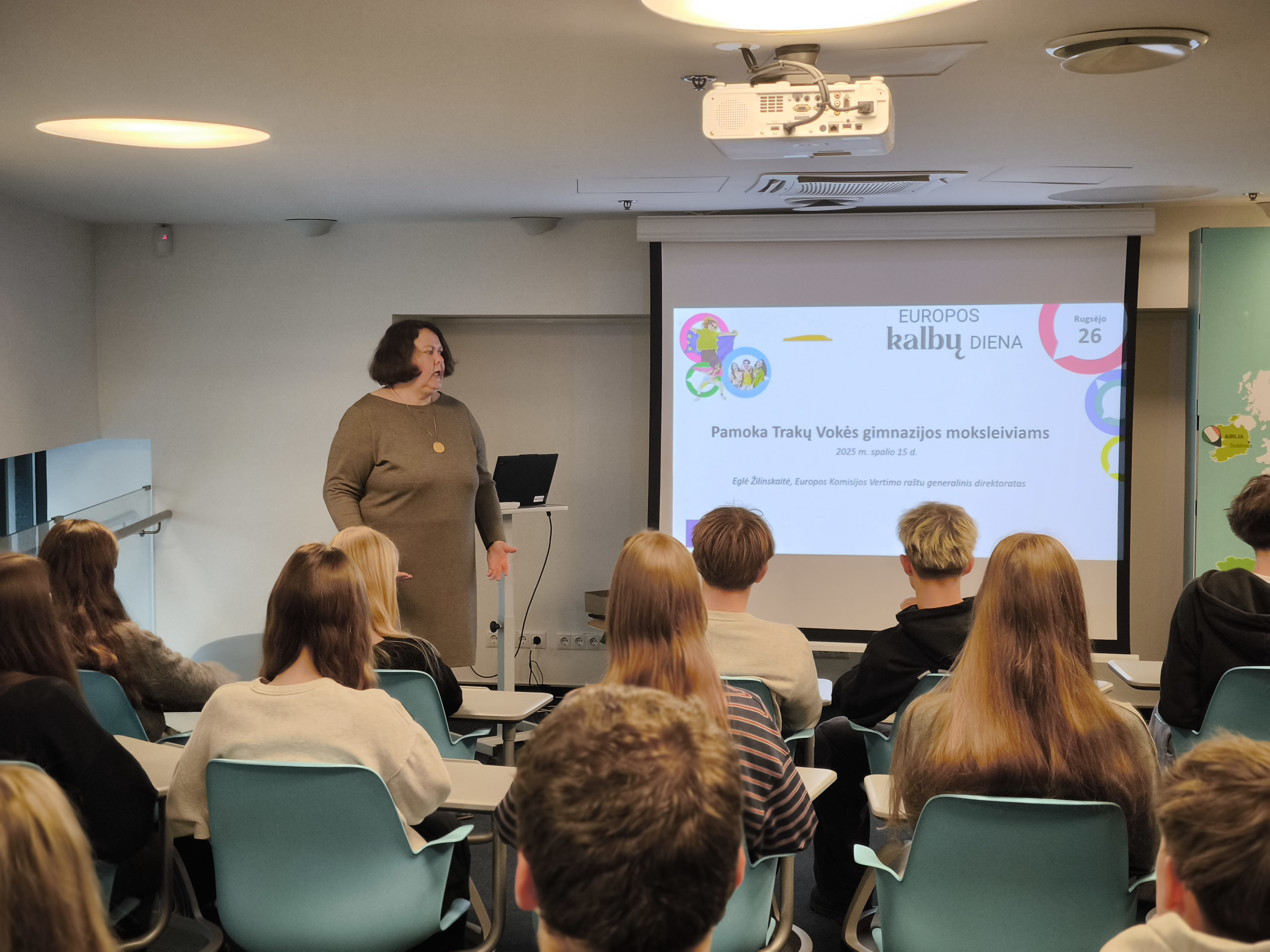 Spalio 15 d. 9b kl. mokiniai dalyvavo projekto „Vilnius yra mokykla“ pamokoje „Užsienio kalbų mokymosi svarba“. Pamokos metu Europos Komisijos atstovybėje Lietuvoje dirbanti kalbos ir vertimo reikalų koordinatorė, vertėja Eglė Žilinskaitė papasakojo apie kalbų mokymosi svarbą, vertėjo profesiją bei darbo ypatumus Europos Komisijoje. Susitikimo pabaigoje mokiniai išbandė savo jėgas viktorinoje apie kalbas.