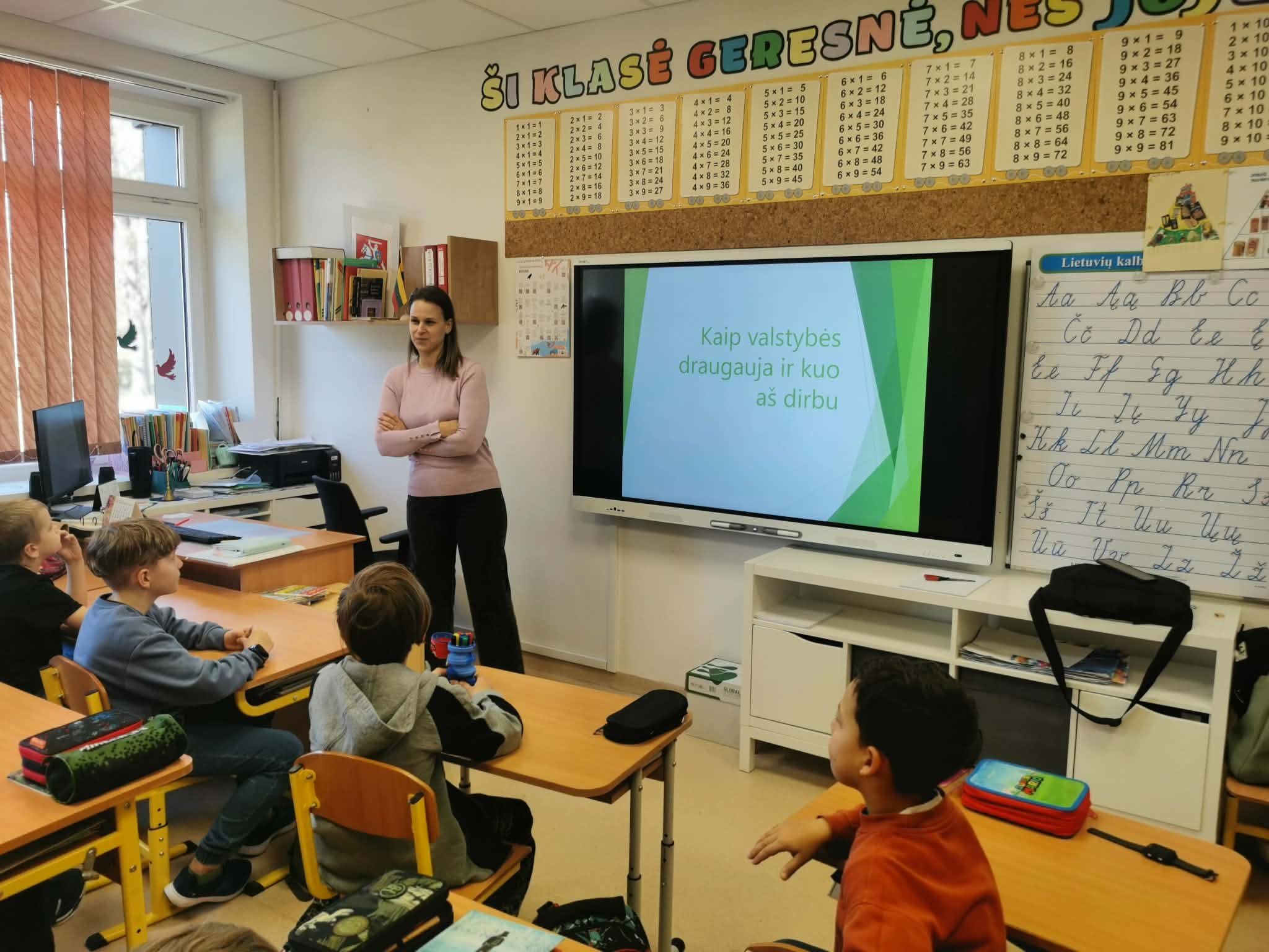 Kaip valstybės draugauja? Kas yra valstybės valdymo aparatas? Ar mokėtume laikytis tarptautinio protokolo?Visa tai ir dar daugiau balandžio 10 dieną sužinojo 2c klasės mokiniai. Pamokoje lankėsi mokinio mama, kuri papasakojo apie darbo Lietuvos Respublikos žemės ūkio ministerijoje specifiką ir įdomybes. Mokiniai ne tik sužinojo daug naujo apie tai, kaip dirba valstybės aparatas, bet ir turėjo galimybę patys praktiškai atlikti svarbią užduotį – atstovauti savo sugalvotai valstybei „prekiaujant“ „užaugintais“ produktais.